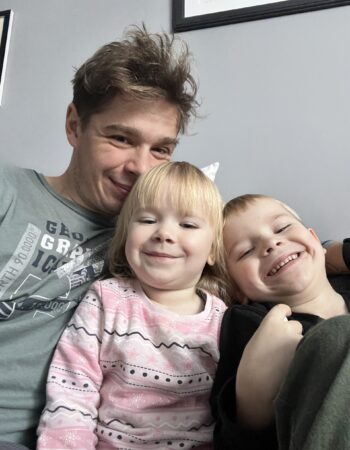 Jestem mężem Idy i ojcem trójki wspaniałych dzieci. Nikodem (7 lat) uczy się w pierwszej klasie – jego pasją (narazie) jest matematyka. Kiedy nie rozwiązuje zadań układa klocki lego. Tymon (5 lat) jest wielkim fanem dinozaurów – potrafi wymienić dziesiątki ich nazw. Często prosi starszego brata, by ten „pocytał” mu Wielki Atlas „Dinozarłów”. Matylda (3 lata) uwielbia się stroić (nosi po kilka „baloletek”) i bawić „w mamę” – nosi na rękach swoją lalkę, karmi ją, sadza na nocnik, a kiedy lala śpi biega po domu i wszystkich ucisza. W całość wszystko spina moja ukochana żona Ida. Na co dzień pracuje w firmie zajmującej się wsparciem przedsiębiorców. Od blisko 11 lat jest dla mnie oparciem i źródłem codziennych radości.